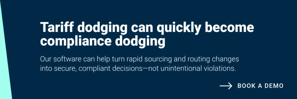 Tariff workarounds designed to reduce duty exposure are now routine. But here’s the question every compliance leader should ask: How could these tariff mitigation strategies be putting our company at export compliance risk? What looks like a smart tariff move can quickly turn into a sanctions violation, import / export licensing failure, or denied party screening oversight if compliance isn’t baked into the decision. Below is where the collision happens most often.