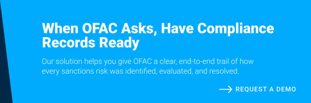 As the regulatory environment becomes more complex, outdated or manual processes place organizations at real risk. Comprehensive reporting and long-term OFAC record retention now require structured workflows, system-level controls, evidence preservation, and tools capable of producing clear, complete, and retrievable records on demand. These capabilities are no longer a back-office function; they are a critical component of sanctions risk management.